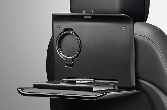Ця багатофункціональна система аксесуарів на спинках сидінь може бути зафіксована між кріпленнями на підголівниках і пристосуваннями, які додаються для зберігання планшетів, пакетів і жакетів.